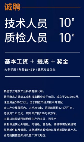工作地點(diǎn):汝州市東江建筑工業(yè)科技集團(tuán)