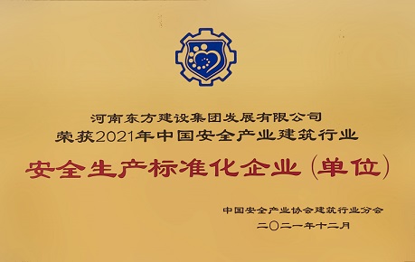 河南東方建設(shè)集團發(fā)展有限公司榮獲“2021年中國安全產(chǎn)業(yè)建筑行業(yè)安全生產(chǎn)標(biāo)準(zhǔn)化企業(yè)”,此殊榮的獲得標(biāo)志著公司在施工安全生產(chǎn)標(biāo)準(zhǔn)化與科技化管理體系方面的成就。獲獎的背后是集團公司對安全管理工作扎實有效的開展,公司一直以來高度重視安全生產(chǎn),始終將安全管理工作放在首位。本著建設(shè)綠色文明的節(jié)能環(huán)保型企業(yè),保障職工的安全與健康水平的成果得到一致認(rèn)可,同時也充分發(fā)揮了公司在安全生產(chǎn)標(biāo)準(zhǔn)化先進(jìn)典型的示范引領(lǐng)作用。